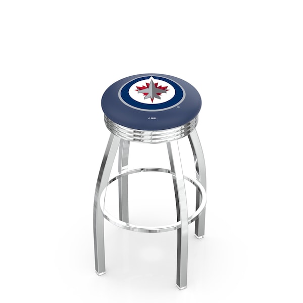 30" Chrome Winnipeg Jets Swivel Bar Stool, Accent Ring