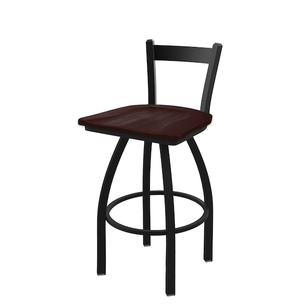 30" Low Back Swivel Bar Stool, Black Wrinkle, Dark Cherry Maple Seat