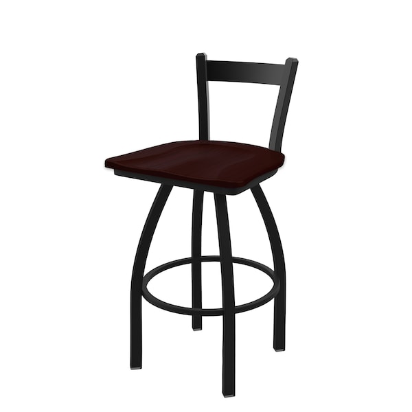 30" Low Back Swivel Bar Stool, Black Wrinkle, Dark Cherry Oak Seat