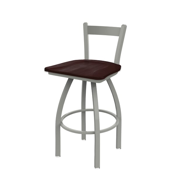 30" Low Back Swivel Bar Stool, Nickel Finish, Dark Cherry Maple Seat