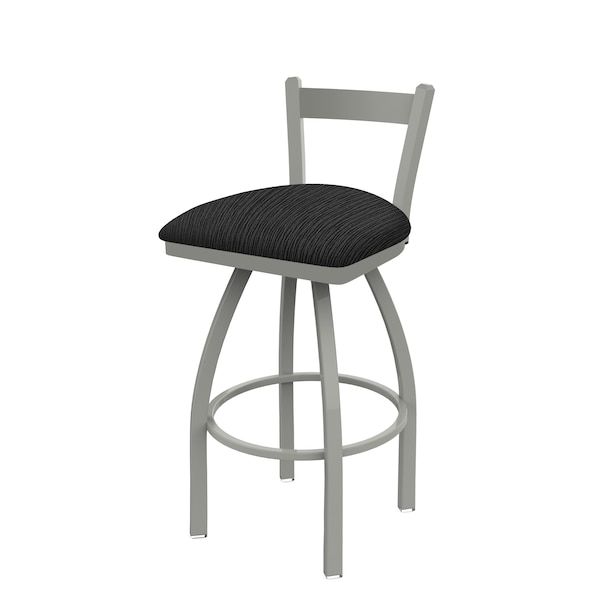30" Low Back Swivel Bar Stool, Nickel Finish, Graph Coal Seat