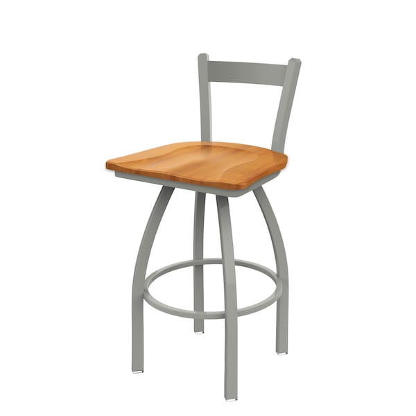 30" Low Back Swivel Bar Stool, Nickel Finish, Med Maple Seat