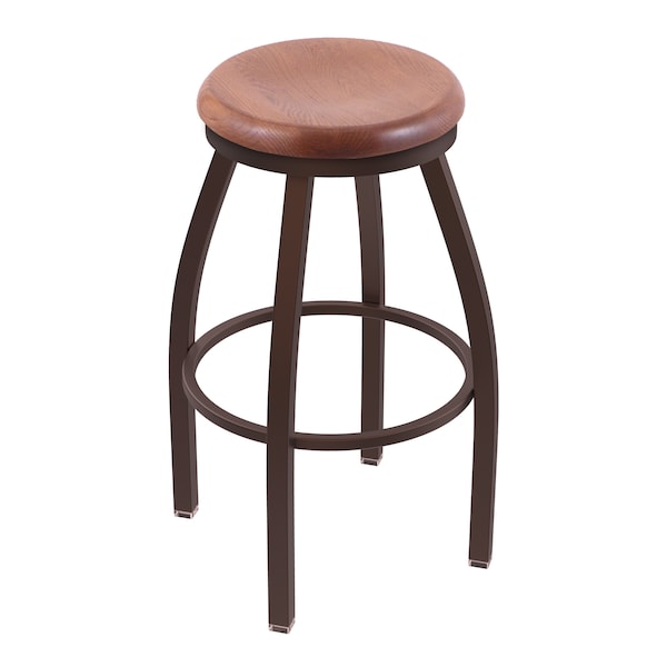 30" Swivel Bar Stool, Bronze Finish, Med Oak Seat