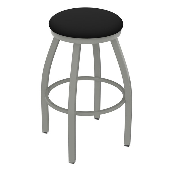 30" Swivel Bar Stool, Nickel Finish, Blk Vinyl Seat