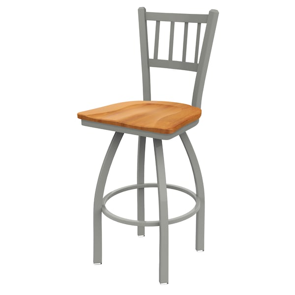 30" Swivel Bar Stool, Nickel Finish, Med Maple Seat