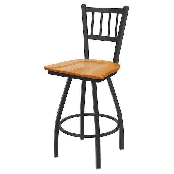 30" Swivel Bar Stool, Pewter Finish, Med Oak Seat