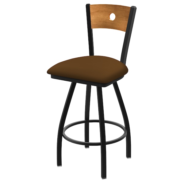 This Black Wrinkle XL Voltaire swivel bar stool has a contemporary design featuring a stylish wood back available with a natural or medium finish. The XL stool line from Holland Bar Stool features a larger base providing superior stability and the seat is 2" wider and 1" deeper than standard seats. The frame is made from commercial quality 16 gauge, 1 1/4 inch tube steel with solid mig welded joints to guarantee strength and durability. The powder coated finish resists chips and scratches and ensures a long-lasting, rich appearance. The wood seats are 1 1/4 inch solid hardwood and are dished for amazing posterior comfort, making sitting for minutes or hours a pleasure. The cushion seats are of the highest quality as well, utilizing a breathable, commercial grade vinyl or fabric. At the heart of the cushion is 2 1/2 inches of highly-dense foam that provides maximum support and will not breakdown in a couple years. You won't find a higher quality stool on the market. If you are going to finish your bar or dining area - do it right, with a stool from the Holland Bar Stool Co.