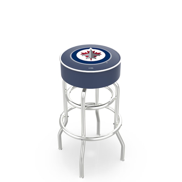 30" Winnipeg Jets Cushion Seat, 2-Ring Chrome Swivel Bar Stool