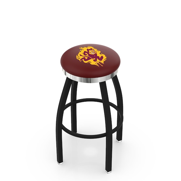 36" Blk Wrinkle Arizona State Swivel Bar Stool, Chrome Ring, Sparky Logo