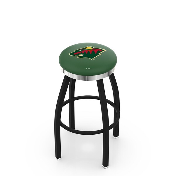 36" Blk Wrinkle Minnesota Wild Swivel Bar Stool, Chrome Ring