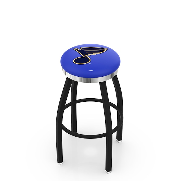 36" Blk Wrinkle St Louis Blues Swivel Bar Stool, Chrome Ring