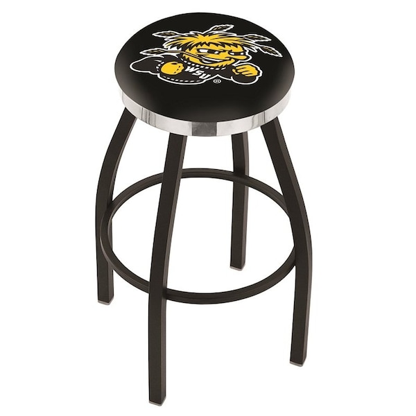 36" Blk Wrinkle Wichita State Swivel Bar Stool, Chrome Ring