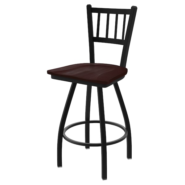 36" Swivel Bar Stool, Black Wrinkle, Dark Cherry Maple Seat