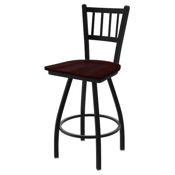 36" Swivel Bar Stool, Black Wrinkle, Dark Cherry Oak Seat