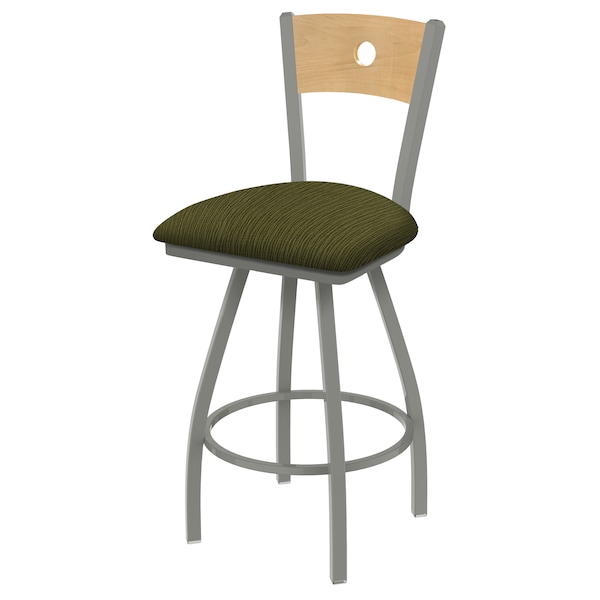 This Anodized Nickel XL Voltaire swivel extra tall bar stool has a contemporary design featuring a stylish wood back available with a natural or medium finish. The XL stool line from Holland Bar Stool features a larger base providing superior stability and the seat is 2" wider and 1" deeper than standard seats. The frame is made from commercial quality 16 gauge, 1 1/4 inch tube steel with solid mig welded joints to guarantee strength and durability. The powder coated finish resists chips and scratches and ensures a long-lasting, rich appearance. The wood seats are 1 1/4 inch solid hardwood and are dished for amazing posterior comfort, making sitting for minutes or hours a pleasure. The cushion seats are of the highest quality as well, utilizing a breathable, commercial grade vinyl or fabric. At the heart of the cushion is 2 1/2 inches of highly-dense foam that provides maximum support and will not breakdown in a couple years. You won't find a higher quality stool on the market. If you are going to finish your bar or dining area - do it right, with a stool from the Holland Bar Stool Co.