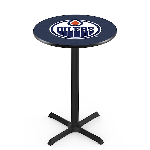42" Blk Wrinkle Edmonton Oilers Pub Table, 36" dia. Top