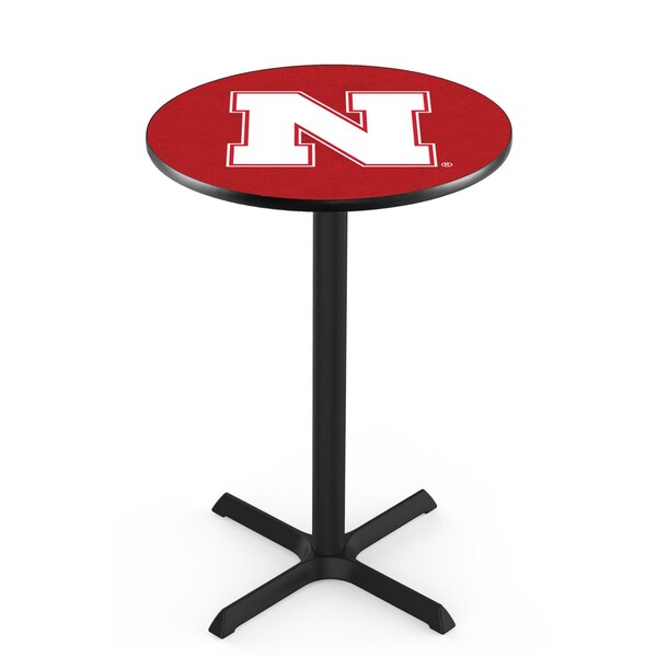 42" Blk Wrinkle Nebraska Pub Table, 36" dia. Top
