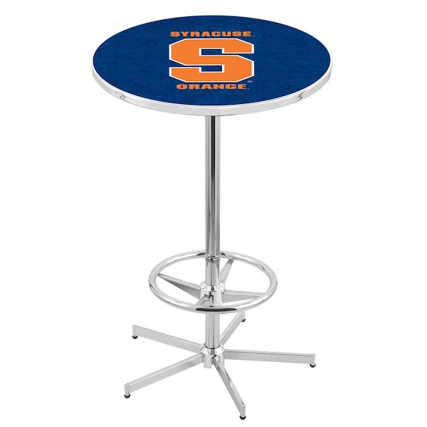 Made for the ultimate sports fan, you will be proud to show where your loyalty lies with this impressive Officially Licensed pub table from the Holland Bar Stool Co. This L216 table with star base and foot ring is sure to add a touch of class to your setting. You can't find a higher quality logo table on the market. The sublimated, full color, scratch resistant, laminate top it attached with a VOC free, environmentally friendly, hot-melt adhesive. The plating grade steel used for the base ensures it will withstand the abuse of the rowdiest of friends for years to come. The base is triple chrome plated to ensure a rich, sleek, long lasting finish. Assembly is easy and quick and the outcome is an acceptionally strong, sturdy table. Adjustable floor glides make for a steady table even on an unlevel floor. If you're going to finish your bar, game room, or man cave - do it right with a table from the Holland Bar Stool Co.
