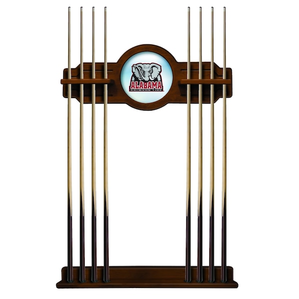This Officially Licensed Alabama 2 piece Cue Rack by the Holland Bar Stool Co. is a must have accessory for your pool table and game room. Our furniture quality que rack is solid wood, no particle board or veneer like the others in the market. The top section features CNC routed decorative elements and a 10 1⁄2” real mirrored glass center piece that features a first surface digitally UV printed logo, not a sticker like the others. The “shelves” have routed holes that hold the stick in place and won’t damage the cue shaft like inexpensive plastic clips. The bottom section has designated areas for the cue bumper to sit in that are felt lined. The rack features a multi step stain and finish process that ensures a durable yet elegant appearance. Hanging hardware is installed in both top and bottom sections that allow for tight, flush mounting to the wall. The unit comes complete with mounting hardware and instructions. Overall Dimensions: Upper Section: 34" x 14"; Lower Section: 34" x 3 1/2". Finish off your game room with this beautiful Cue Rack from the Holland Bar Stool Co.