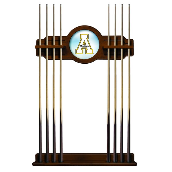 This Officially Licensed Appalachian State 2 piece Cue Rack by the Holland Bar Stool Co. is a must have accessory for your pool table and game room. Our furniture quality que rack is solid wood, no particle board or veneer like the others in the market. The top section features CNC routed decorative elements and a 10 1⁄2” real mirrored glass center piece that features a first surface digitally UV printed logo, not a sticker like the others. The “shelves” have routed holes that hold the stick in place and won’t damage the cue shaft like inexpensive plastic clips. The bottom section has designated areas for the cue bumper to sit in that are felt lined. The rack features a multi step stain and finish process that ensures a durable yet elegant appearance. Hanging hardware is installed in both top and bottom sections that allow for tight, flush mounting to the wall. The unit comes complete with mounting hardware and instructions. Overall Dimensions: Upper Section: 34" x 14"; Lower Section: 34" x 3 1/2". Finish off your game room with this beautiful Cue Rack from the Holland Bar Stool Co.