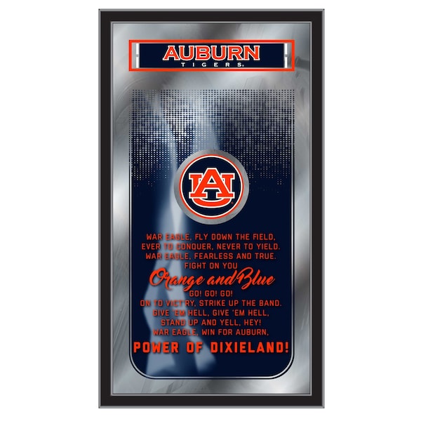 The perfect way to show your school pride, our Fight Song Mirror displays your school's logo and the verses that get them fired up on game day, with a style that fits any setting. With it's simple but elegant design, colors burst through the 1/8" thick glass and are highlighted by the mirrored accents. Framed with a black, 1 1/4 wrapped wood frame with saw tooth hangers, this 26"(H) x 15"(W) mirror is ideal for your office, garage, or any room of the house.