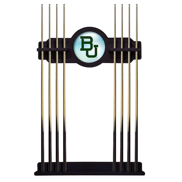 This Officially Licensed Baylor 2 piece Cue Rack by the Holland Bar Stool Co. is a must have accessory for your pool table and game room. Our furniture quality que rack is solid wood, no particle board or veneer like the others in the market. The top section features CNC routed decorative elements and a 10 1⁄2” real mirrored glass center piece that features a first surface digitally UV printed logo, not a sticker like the others. The “shelves” have routed holes that hold the stick in place and won’t damage the cue shaft like inexpensive plastic clips. The bottom section has designated areas for the cue bumper to sit in that are felt lined. The rack features a multi step stain and finish process that ensures a durable yet elegant appearance. Hanging hardware is installed in both top and bottom sections that allow for tight, flush mounting to the wall. The unit comes complete with mounting hardware and instructions. Overall Dimensions: Upper Section: 34" x 14"; Lower Section: 34" x 3 1/2". Finish off your game room with this beautiful Cue Rack from the Holland Bar Stool Co.