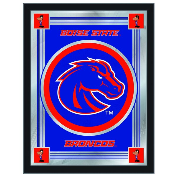 Show your school pride with this Official Licensed Logo Mirror from the Holland Bar Stool Co. With it's simple but elegant design, colors burst through the 1/8" thick glass and are highlighted by the mirrored accents. Framed with a black, 1 1/4 wrapped wood frame with saw tooth hangers, this 17"(W) x 22"(H) mirror is ideal for your office, garage, or any room of the house.