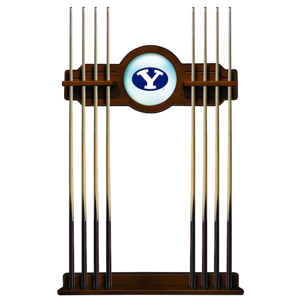 This Officially Licensed Brigham Young 2 piece Cue Rack by the Holland Bar Stool Co. is a must have accessory for your pool table and game room. Our furniture quality que rack is solid wood, no particle board or veneer like the others in the market. The top section features CNC routed decorative elements and a 10 1⁄2” real mirrored glass center piece that features a first surface digitally UV printed logo, not a sticker like the others. The “shelves” have routed holes that hold the stick in place and won’t damage the cue shaft like inexpensive plastic clips. The bottom section has designated areas for the cue bumper to sit in that are felt lined. The rack features a multi step stain and finish process that ensures a durable yet elegant appearance. Hanging hardware is installed in both top and bottom sections that allow for tight, flush mounting to the wall. The unit comes complete with mounting hardware and instructions. Overall Dimensions: Upper Section: 34" x 14"; Lower Section: 34" x 3 1/2". Finish off your game room with this beautiful Cue Rack from the Holland Bar Stool Co.
