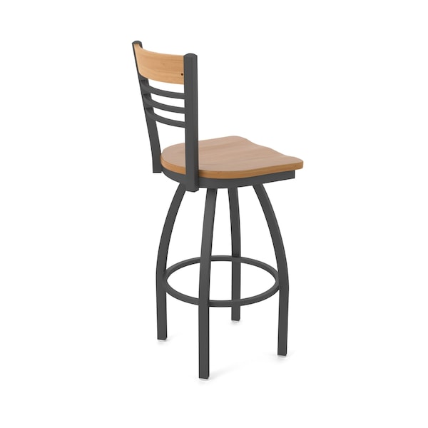Eleanor 25in Swivel Counter Stool with Pewter Finish, Medium Back and Medium Maple Seat