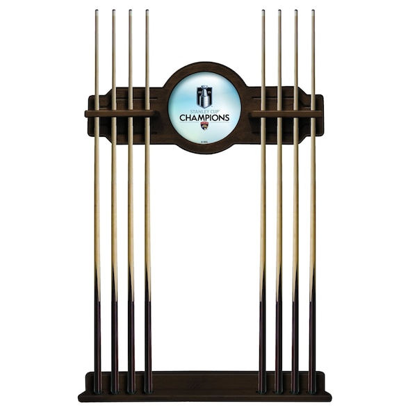 Celebrate the 2025 Stanley Cup Champs, the Florida Panthers with this Officially Licensed, 2 piece Cue Rack by the Holland Bar Stool Co. This is a must have accessory for your pool table and game room. Our furniture quality que rack is solid wood, no particle board or veneer like the others in the market. The top section features CNC routed decorative elements and a 10 real mirrored glass center piece that features a first surface digitally UV printed logo, not a sticker like the others. The shelves have routed holes that hold the stick in place and wont damage the cue shaft like inexpensive plastic clips. The bottom section has designated areas for the cue bumper to sit in that are felt lined. The rack features a multi step stain and finish process that ensures a durable yet elegant appearance. Hanging hardware is installed in both top and bottom sections that allow for tight, flush mounting to the wall. The unit comes complete with mounting hardware and instructions. Overall Dimensions: Upper Section: 34'' x 14''; Lower Section: 34'' x 3 1/2''. Finish off your game room with this beautiful Cue Rack from the Holland Bar Stool Co.