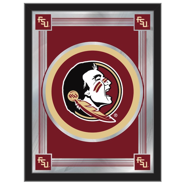 Show your school pride with this Official Licensed Logo Mirror from the Holland Bar Stool Co. With it's simple but elegant design, colors burst through the 1/8" thick glass and are highlighted by the mirrored accents. Framed with a black, 1 1/4 wrapped wood frame with saw tooth hangers, this 17"(W) x 22"(H) mirror is ideal for your office, garage, or any room of the house.