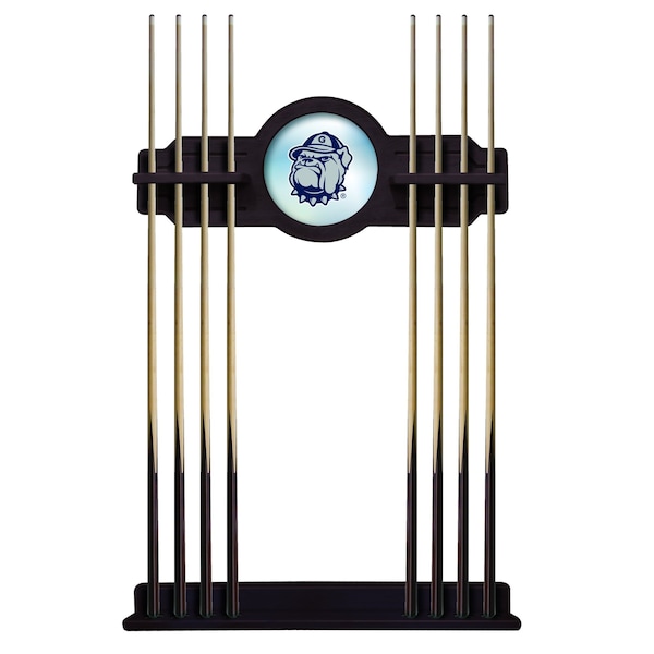 This Officially Licensed Georgetown 2 piece Cue Rack by the Holland Bar Stool Co. is a must have accessory for your pool table and game room. Our furniture quality que rack is solid wood, no particle board or veneer like the others in the market. The top section features CNC routed decorative elements and a 10 1⁄2” real mirrored glass center piece that features a first surface digitally UV printed logo, not a sticker like the others. The “shelves” have routed holes that hold the stick in place and won’t damage the cue shaft like inexpensive plastic clips. The bottom section has designated areas for the cue bumper to sit in that are felt lined. The rack features a multi step stain and finish process that ensures a durable yet elegant appearance. Hanging hardware is installed in both top and bottom sections that allow for tight, flush mounting to the wall. The unit comes complete with mounting hardware and instructions. Overall Dimensions: Upper Section: 34" x 14"; Lower Section: 34" x 3 1/2". Finish off your game room with this beautiful Cue Rack from the Holland Bar Stool Co.