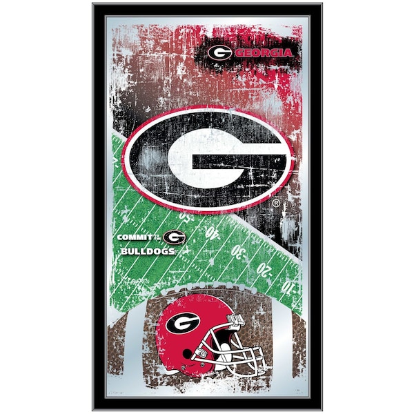 Show your school pride with this Official Licensed Football Mirror from the Holland Bar Stool Co. With it's simple but elegant design, colors burst through the 1/8" thick glass and are highlighted by the mirrored accents. Framed with a black, 1 1/4 wrapped wood frame with saw tooth hangers, this 15"(H) x 26"(W) mirror is ideal for your office, garage, or any room of the house.