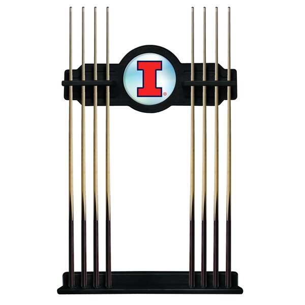This Officially Licensed Illinois 2 piece Cue Rack by the Holland Bar Stool Co. is a must have accessory for your pool table and game room. Our furniture quality que rack is solid wood, no particle board or veneer like the others in the market. The top section features CNC routed decorative elements and a 10 1⁄2” real mirrored glass center piece that features a first surface digitally UV printed logo, not a sticker like the others. The “shelves” have routed holes that hold the stick in place and won’t damage the cue shaft like inexpensive plastic clips. The bottom section has designated areas for the cue bumper to sit in that are felt lined. The rack features a multi step stain and finish process that ensures a durable yet elegant appearance. Hanging hardware is installed in both top and bottom sections that allow for tight, flush mounting to the wall. The unit comes complete with mounting hardware and instructions. Overall Dimensions: Upper Section: 34" x 14"; Lower Section: 34" x 3 1/2". Finish off your game room with this beautiful Cue Rack from the Holland Bar Stool Co.