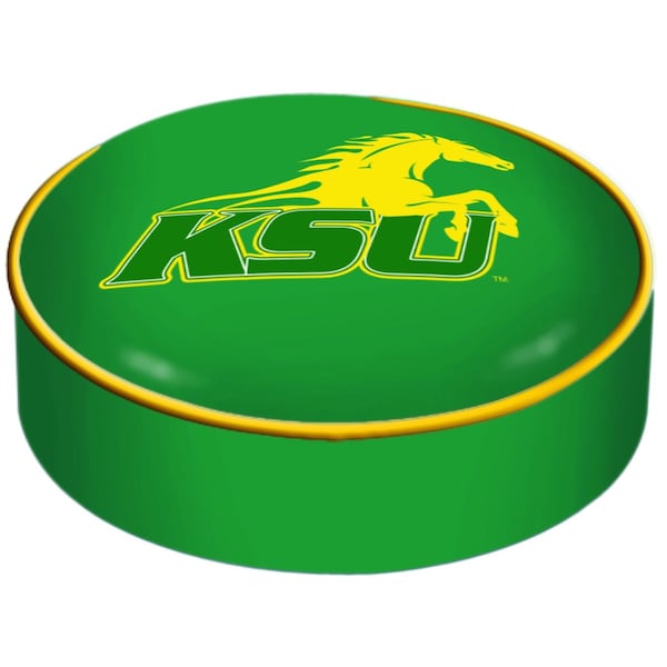 This Kentucky State University bar stool cushion cover is made using the finest commercial grade vinyl and utilizing a state of the art printing process to give you the most detailed logo possible. This cover slips over your existing cushion, held in place by an elastic band. The vinyl cover will fit 14" diameter x 4" thick seats. This product is Officially Licensed. Make those old stools new again while supporting your team with the help of Holland Bar Stool Co.!