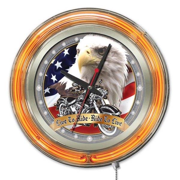 Live to Ride Double Neon Ring, 15" dia. Logo Clock