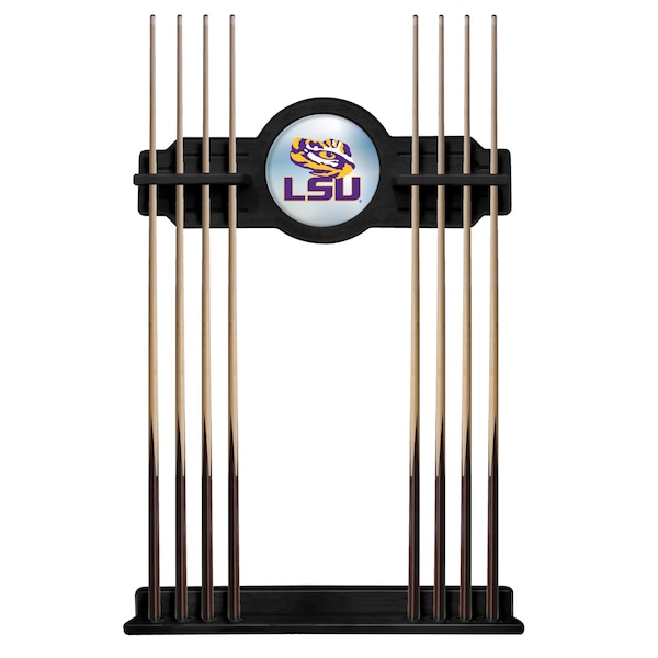 This Officially Licensed Louisiana State 2 piece Cue Rack by the Holland Bar Stool Co. is a must have accessory for your pool table and game room. Our furniture quality que rack is solid wood, no particle board or veneer like the others in the market. The top section features CNC routed decorative elements and a 10 1⁄2” real mirrored glass center piece that features a first surface digitally UV printed logo, not a sticker like the others. The “shelves” have routed holes that hold the stick in place and won’t damage the cue shaft like inexpensive plastic clips. The bottom section has designated areas for the cue bumper to sit in that are felt lined. The rack features a multi step stain and finish process that ensures a durable yet elegant appearance. Hanging hardware is installed in both top and bottom sections that allow for tight, flush mounting to the wall. The unit comes complete with mounting hardware and instructions. Overall Dimensions: Upper Section: 34" x 14"; Lower Section: 34" x 3 1/2". Finish off your game room with this beautiful Cue Rack from the Holland Bar Stool Co.