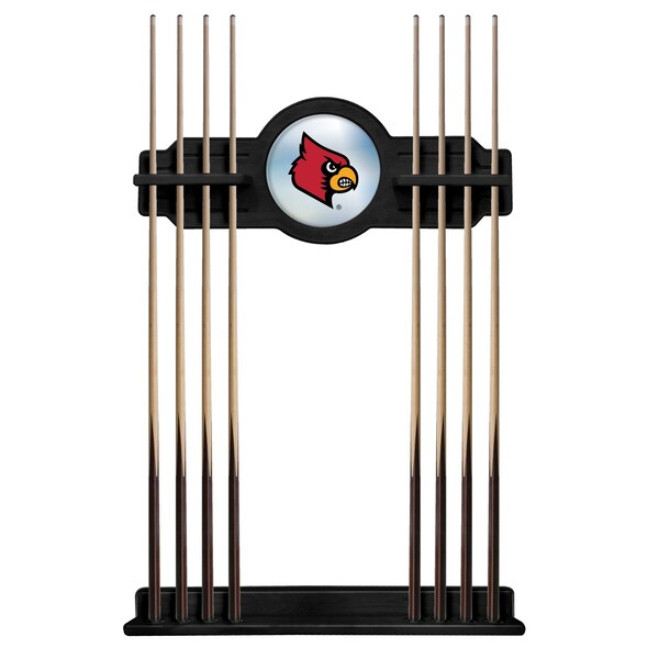 This Officially Licensed Louisville 2 piece Cue Rack by the Holland Bar Stool Co. is a must have accessory for your pool table and game room. Our furniture quality que rack is solid wood, no particle board or veneer like the others in the market. The top section features CNC routed decorative elements and a 10 1⁄2” real mirrored glass center piece that features a first surface digitally UV printed logo, not a sticker like the others. The “shelves” have routed holes that hold the stick in place and won’t damage the cue shaft like inexpensive plastic clips. The bottom section has designated areas for the cue bumper to sit in that are felt lined. The rack features a multi step stain and finish process that ensures a durable yet elegant appearance. Hanging hardware is installed in both top and bottom sections that allow for tight, flush mounting to the wall. The unit comes complete with mounting hardware and instructions. Overall Dimensions: Upper Section: 34" x 14"; Lower Section: 34" x 3 1/2". Finish off your game room with this beautiful Cue Rack from the Holland Bar Stool Co.