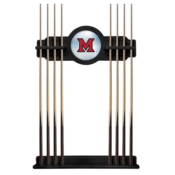 This Officially Licensed Miami (OH) 2 piece Cue Rack by the Holland Bar Stool Co. is a must have accessory for your pool table and game room. Our furniture quality que rack is solid wood, no particle board or veneer like the others in the market. The top section features CNC routed decorative elements and a 10 1⁄2” real mirrored glass center piece that features a first surface digitally UV printed logo, not a sticker like the others. The “shelves” have routed holes that hold the stick in place and won’t damage the cue shaft like inexpensive plastic clips. The bottom section has designated areas for the cue bumper to sit in that are felt lined. The rack features a multi step stain and finish process that ensures a durable yet elegant appearance. Hanging hardware is installed in both top and bottom sections that allow for tight, flush mounting to the wall. The unit comes complete with mounting hardware and instructions. Overall Dimensions: Upper Section: 34" x 14"; Lower Section: 34" x 3 1/2". Finish off your game room with this beautiful Cue Rack from the Holland Bar Stool Co.