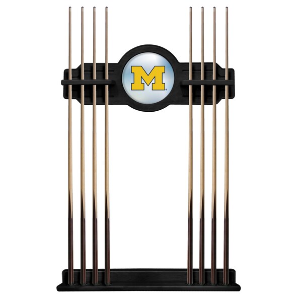 This Officially Licensed Michigan 2 piece Cue Rack by the Holland Bar Stool Co. is a must have accessory for your pool table and game room. Our furniture quality que rack is solid wood, no particle board or veneer like the others in the market. The top section features CNC routed decorative elements and a 10 1⁄2” real mirrored glass center piece that features a first surface digitally UV printed logo, not a sticker like the others. The “shelves” have routed holes that hold the stick in place and won’t damage the cue shaft like inexpensive plastic clips. The bottom section has designated areas for the cue bumper to sit in that are felt lined. The rack features a multi step stain and finish process that ensures a durable yet elegant appearance. Hanging hardware is installed in both top and bottom sections that allow for tight, flush mounting to the wall. The unit comes complete with mounting hardware and instructions. Overall Dimensions: Upper Section: 34" x 14"; Lower Section: 34" x 3 1/2". Finish off your game room with this beautiful Cue Rack from the Holland Bar Stool Co.