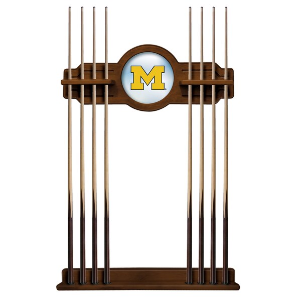 This Officially Licensed Michigan 2 piece Cue Rack by the Holland Bar Stool Co. is a must have accessory for your pool table and game room. Our furniture quality que rack is solid wood, no particle board or veneer like the others in the market. The top section features CNC routed decorative elements and a 10 1⁄2” real mirrored glass center piece that features a first surface digitally UV printed logo, not a sticker like the others. The “shelves” have routed holes that hold the stick in place and won’t damage the cue shaft like inexpensive plastic clips. The bottom section has designated areas for the cue bumper to sit in that are felt lined. The rack features a multi step stain and finish process that ensures a durable yet elegant appearance. Hanging hardware is installed in both top and bottom sections that allow for tight, flush mounting to the wall. The unit comes complete with mounting hardware and instructions. Overall Dimensions: Upper Section: 34" x 14"; Lower Section: 34" x 3 1/2". Finish off your game room with this beautiful Cue Rack from the Holland Bar Stool Co.
