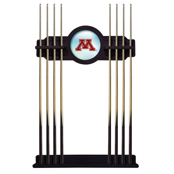 This Officially Licensed Minnesota 2 piece Cue Rack by the Holland Bar Stool Co. is a must have accessory for your pool table and game room. Our furniture quality que rack is solid wood, no particle board or veneer like the others in the market. The top section features CNC routed decorative elements and a 10 1⁄2” real mirrored glass center piece that features a first surface digitally UV printed logo, not a sticker like the others. The “shelves” have routed holes that hold the stick in place and won’t damage the cue shaft like inexpensive plastic clips. The bottom section has designated areas for the cue bumper to sit in that are felt lined. The rack features a multi step stain and finish process that ensures a durable yet elegant appearance. Hanging hardware is installed in both top and bottom sections that allow for tight, flush mounting to the wall. The unit comes complete with mounting hardware and instructions. Overall Dimensions: Upper Section: 34" x 14"; Lower Section: 34" x 3 1/2". Finish off your game room with this beautiful Cue Rack from the Holland Bar Stool Co.