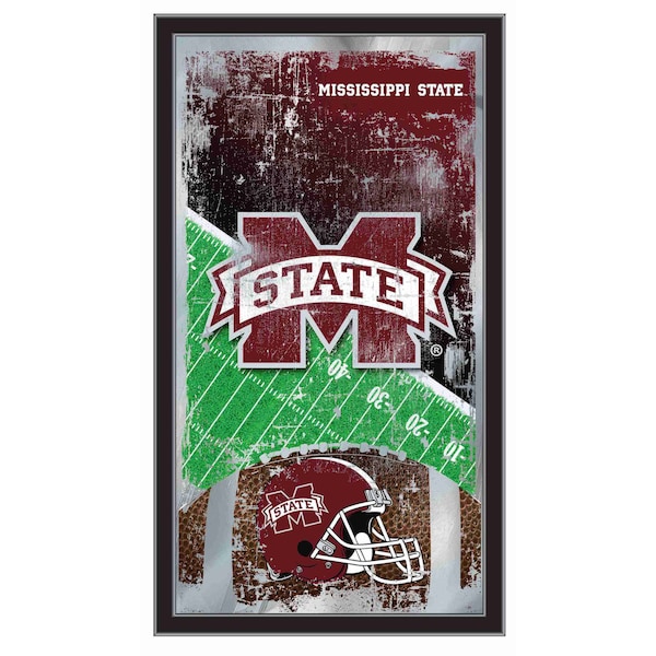 Show your school pride with this Official Licensed Football Mirror from the Holland Bar Stool Co. With it's simple but elegant design, colors burst through the 1/8" thick glass and are highlighted by the mirrored accents. Framed with a black, 1 1/4 wrapped wood frame with saw tooth hangers, this 15"(H) x 26"(W) mirror is ideal for your office, garage, or any room of the house.
