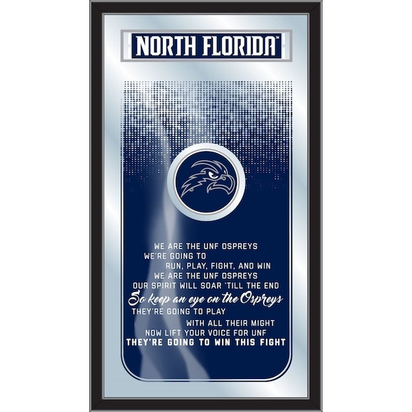 The perfect way to show your school pride, our Fight Song Mirror displays your school's logo and the verses that get them fired up on game day, with a style that fits any setting. With it's simple but elegant design, colors burst through the 1/8" thick glass and are highlighted by the mirrored accents. Framed with a black, 1 1/4 wrapped wood frame with saw tooth hangers, this 26"(H) x 15"(W) mirror is ideal for your office, garage, or any room of the house.