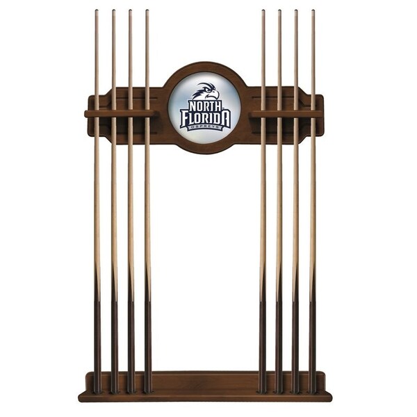 This Officially Licensed North Florida 2 piece Cue Rack by the Holland Bar Stool Co. is a must have accessory for your pool table and game room. Our furniture quality que rack is solid wood, no particle board or veneer like the others in the market. The top section features CNC routed decorative elements and a 10 1⁄2” real mirrored glass center piece that features a first surface digitally UV printed logo, not a sticker like the others. The “shelves” have routed holes that hold the stick in place and won’t damage the cue shaft like inexpensive plastic clips. The bottom section has designated areas for the cue bumper to sit in that are felt lined. The rack features a multi step stain and finish process that ensures a durable yet elegant appearance. Hanging hardware is installed in both top and bottom sections that allow for tight, flush mounting to the wall. The unit comes complete with mounting hardware and instructions. Overall Dimensions: Upper Section: 34" x 14"; Lower Section: 34" x 3 1/2". Finish off your game room with this beautiful Cue Rack from the Holland Bar Stool Co.