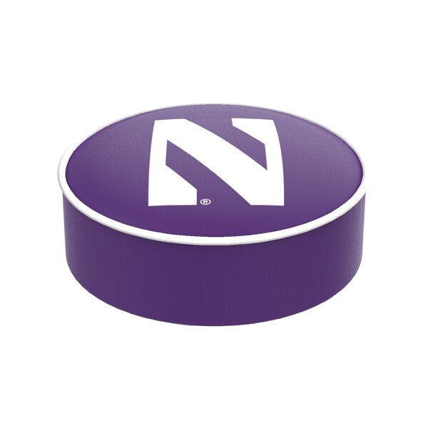 This Northwestern bar stool cushion cover is made using the finest commercial grade vinyl and utilizing a state of the art printing process to give you the most detailed logo possible. This cover slips over your existing cushion, held in place by an elastic band. The vinyl cover will fit 14" diameter x 4" thick seats. This product is Officially Licensed. Make those old stools new again while supporting your team with the help of Holland Bar Stool Co.!