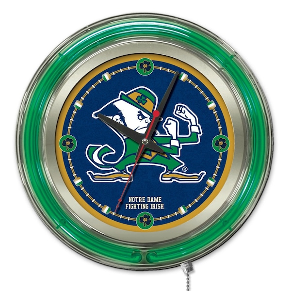 Notre Dame Double Neon 15" Clock Leprechaun