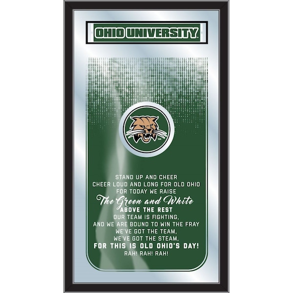The perfect way to show your school pride, our Fight Song Mirror displays your school's logo and the verses that get them fired up on game day, with a style that fits any setting. With it's simple but elegant design, colors burst through the 1/8" thick glass and are highlighted by the mirrored accents. Framed with a black, 1 1/4 wrapped wood frame with saw tooth hangers, this 26"(H) x 15"(W) mirror is ideal for your office, garage, or any room of the house.