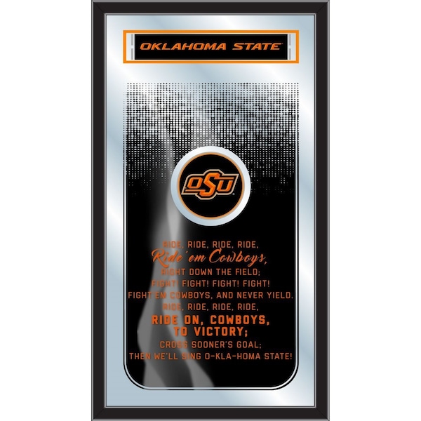 The perfect way to show your school pride, our Fight Song Mirror displays your school's logo and the verses that get them fired up on game day, with a style that fits any setting. With it's simple but elegant design, colors burst through the 1/8" thick glass and are highlighted by the mirrored accents. Framed with a black, 1 1/4 wrapped wood frame with saw tooth hangers, this 26"(H) x 15"(W) mirror is ideal for your office, garage, or any room of the house.
