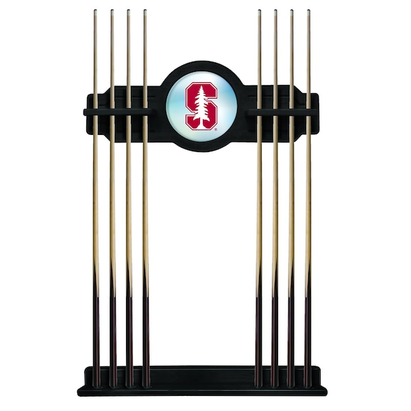 This Officially Licensed Stanford 2 piece Cue Rack by the Holland Bar Stool Co. is a must have accessory for your pool table and game room. Our furniture quality que rack is solid wood, no particle board or veneer like the others in the market. The top section features CNC routed decorative elements and a 10 1⁄2” real mirrored glass center piece that features a first surface digitally UV printed logo, not a sticker like the others. The “shelves” have routed holes that hold the stick in place and won’t damage the cue shaft like inexpensive plastic clips. The bottom section has designated areas for the cue bumper to sit in that are felt lined. The rack features a multi step stain and finish process that ensures a durable yet elegant appearance. Hanging hardware is installed in both top and bottom sections that allow for tight, flush mounting to the wall. The unit comes complete with mounting hardware and instructions. Overall Dimensions: Upper Section: 34" x 14"; Lower Section: 34" x 3 1/2". Finish off your game room with this beautiful Cue Rack from the Holland Bar Stool Co.